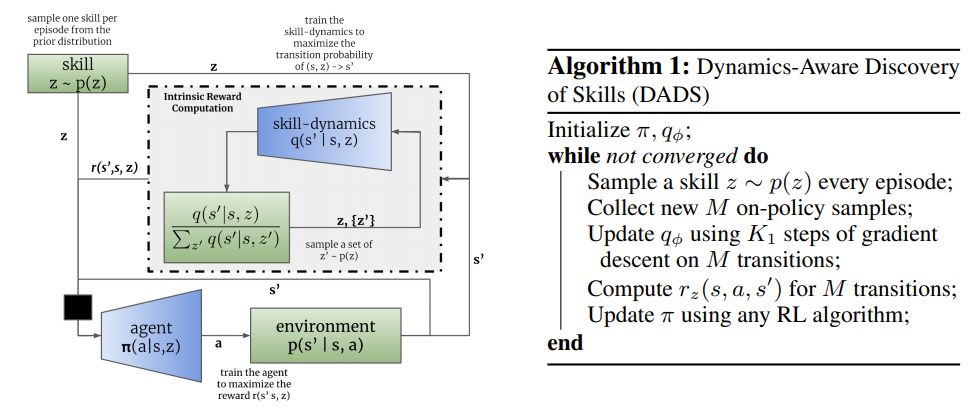 Conventionally, model-based reinforcement learning (MBRL) aims to learn a global model for the dynamics of the environment. A good model can potentially enable planning algorithms to generate a large variety of behaviors and solve diverse tasks. However, learning an accurate model for complex dynamical systems is difficult, and even then, the model might not generalize well outside the distribution of states on which it was trained. In this work, we combine model-based learning with model-free learning of primitives that make model-based planning easy. To that end, we aim to answer the question: how can we discover skills whose outcomes are easy to predict? We propose an unsupervised learning algorithm, Dynamics-Aware Discovery of Skills (DADS), which simultaneously discovers predictable behaviors and learns their dynamics. Our method can leverage continuous skill spaces, theoretically, allowing us to learn infinitely many behaviors even for high-dimensional state-spaces. We demonstrate that zero-shot planning in the learned latent space significantly outperforms standard MBRL and model-free goal-conditioned RL, can handle sparse reward tasks, and substantially improves over prior hierarchical RL methods for unsupervised skill discovery.